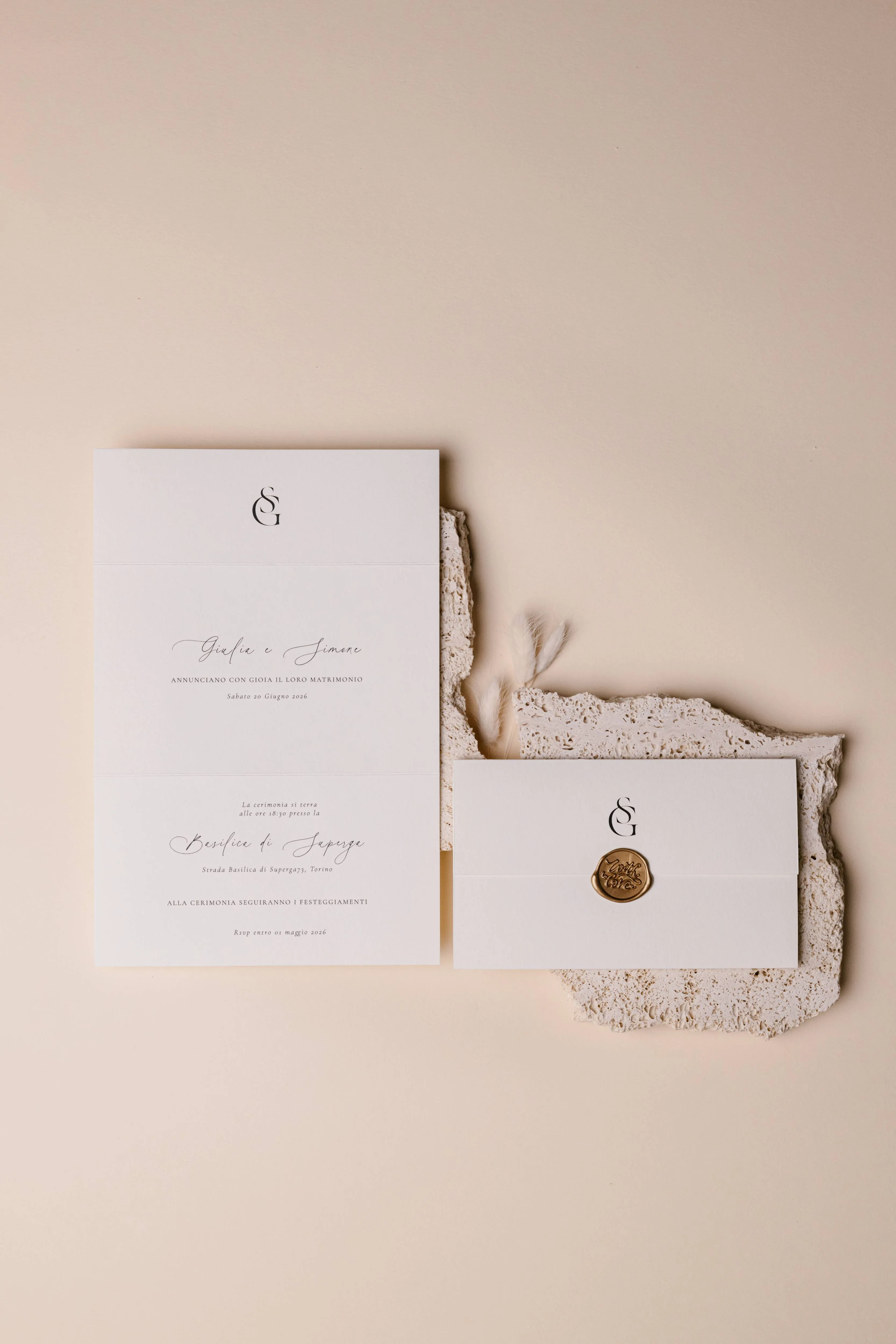 Grafica moderna ed esclusiva, firmata dall’unicità della vostra storia d’amore.