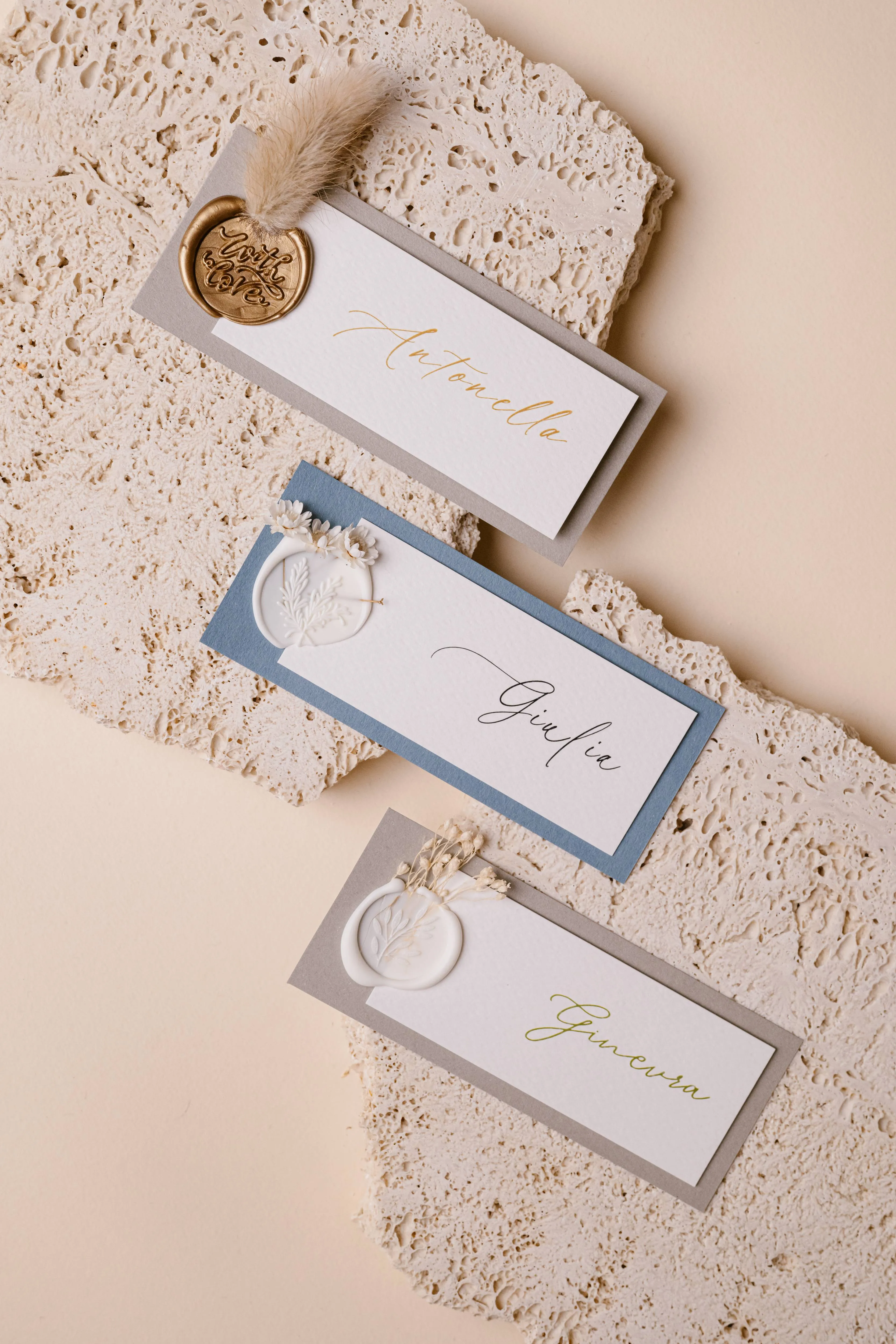 Ogni posto diventa speciale. Indica con eleganza dove siederanno le persone che ami.