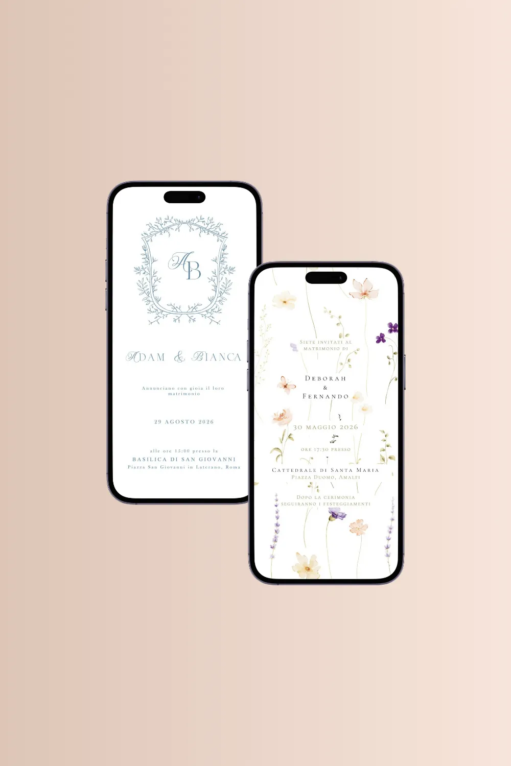 Perfetti per chi non può ricevere l'invito cartaceo. Pensati per essere eleganti e veloci da condividere.